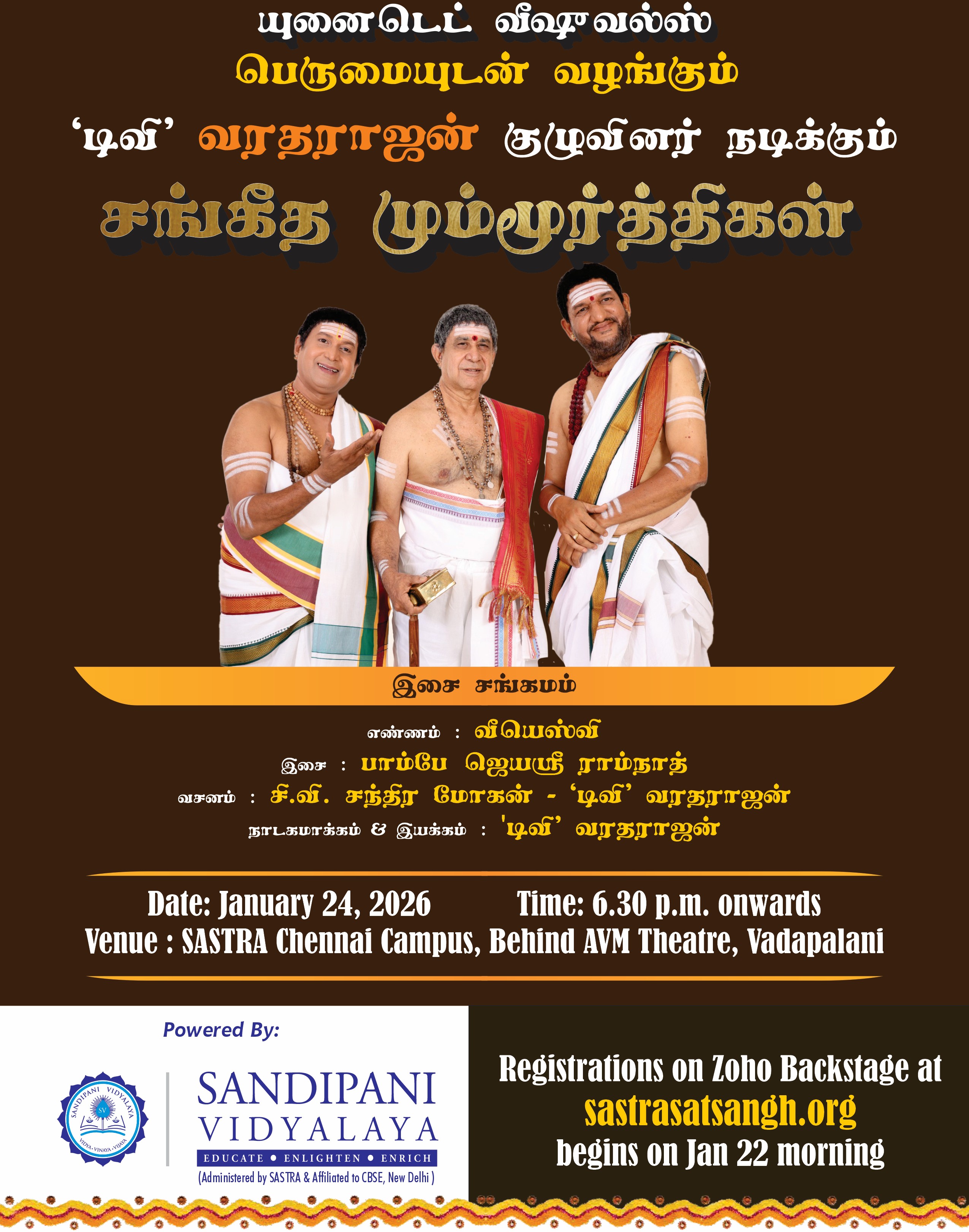 டிவி வரதராஜன் குழுவினர் நடிக்கும் சங்கீத மும்மூர்த்திகள் – இசை சங்கமம் [Registration Link]
